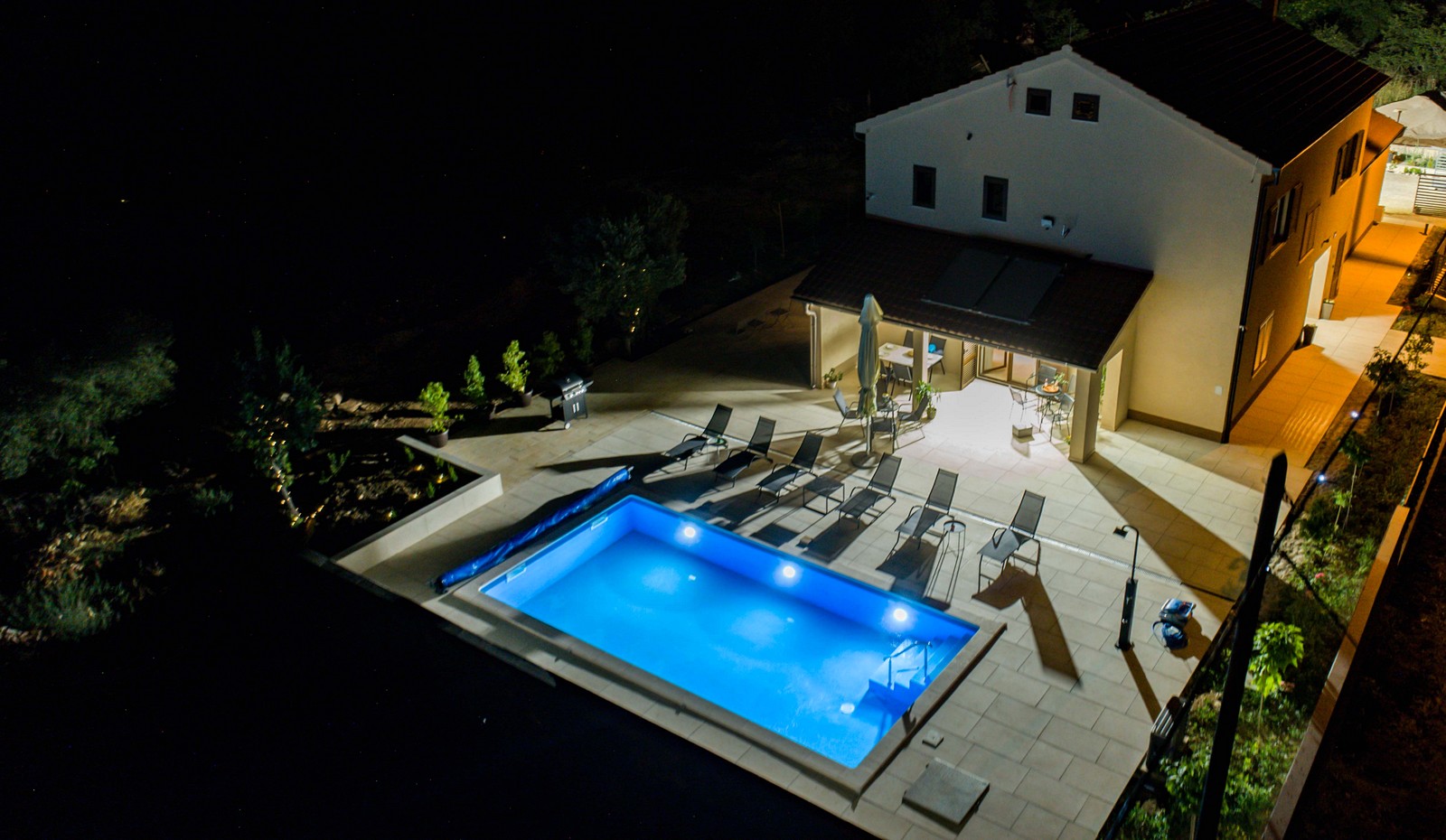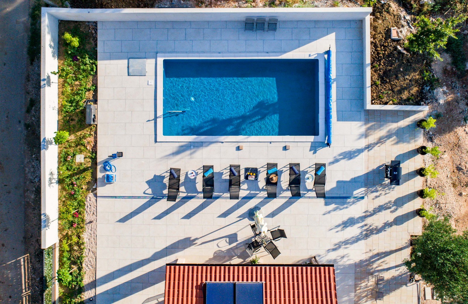 Kuću za odmor Adela okružuje velika okućnica, prostor ukrašen mediteranskim biljkama savršen za odmor i uživanje na ležaljkama. U dvorištu ville se nalazi bazen s okolnim prostorom za sunčanje i odmor.